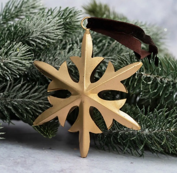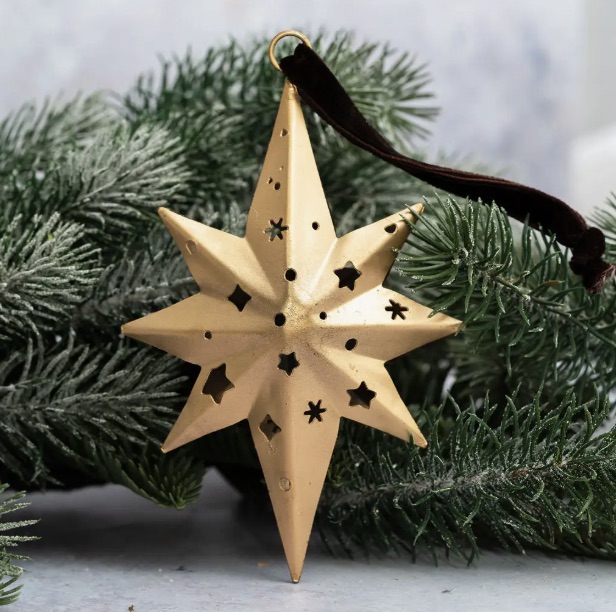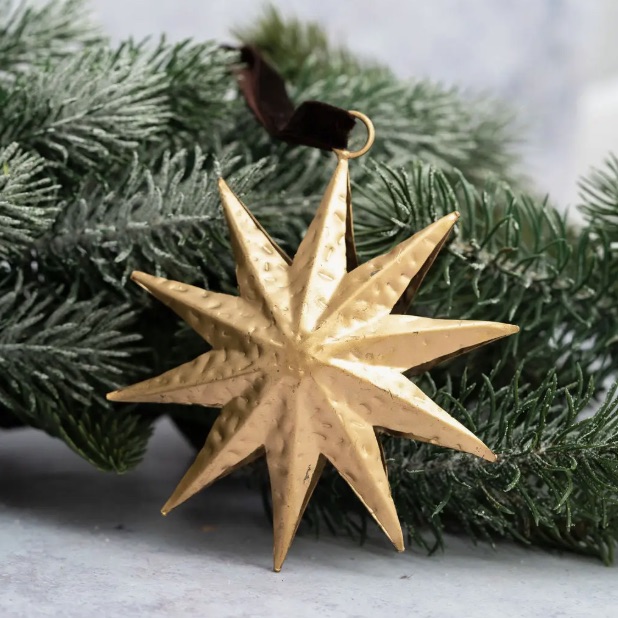 Hand-crafted in India by skilled artisans, each piece showcases subtle variations that make it uniquely yours. The star’s three-dimensional form is mirrored front and back, creating a balanced, sculptural look perfect for hanging on Christmas trees, garlands, wreaths, or decorative branches. Finished in a soft, warm gold tone, Antila adds a touch of timeless sophistication to both classic and contemporary interiors.