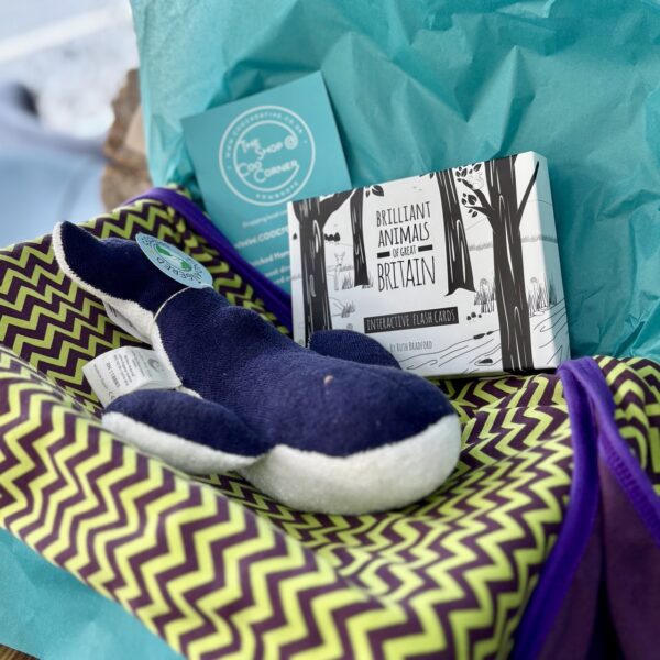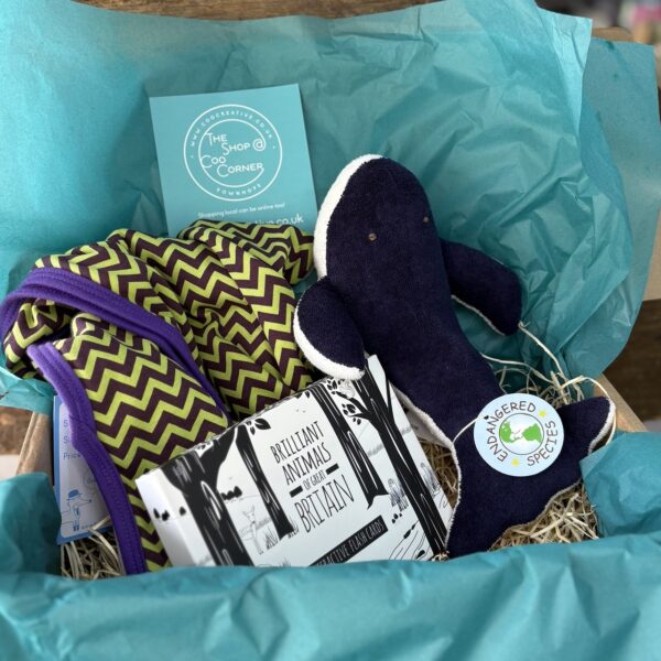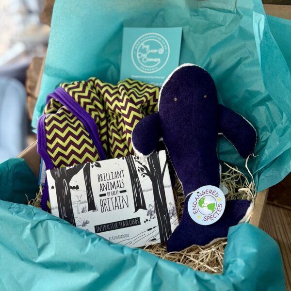 Something a bit different, a wonderful bright blanket, orangic Whale toy and the fab B&W interactive flash cards