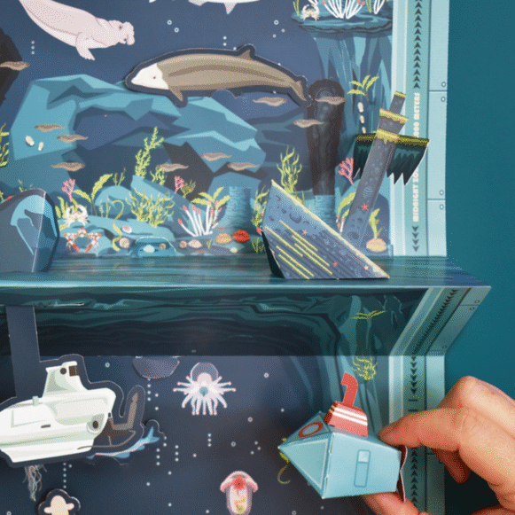 Explore the depths of the ocean by creating an amazing seascape. A 3-in-1 project with a 3D wall chart, fact packed board game and playful activities.