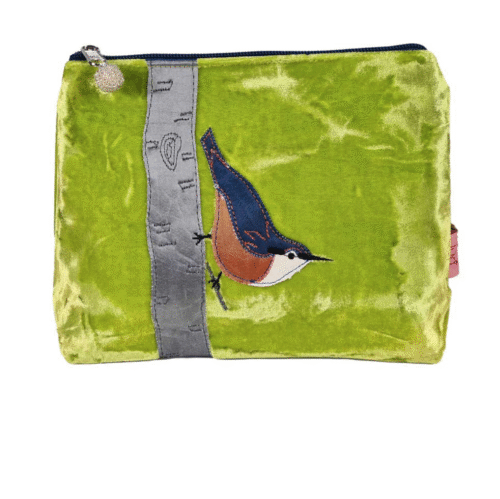This bestselling purse with striking metallic embroidered design on cotton canvas or velvet 27 × 16.50 cm the ‘Nuthatch” is slightly smaller at 25cm x 16cm