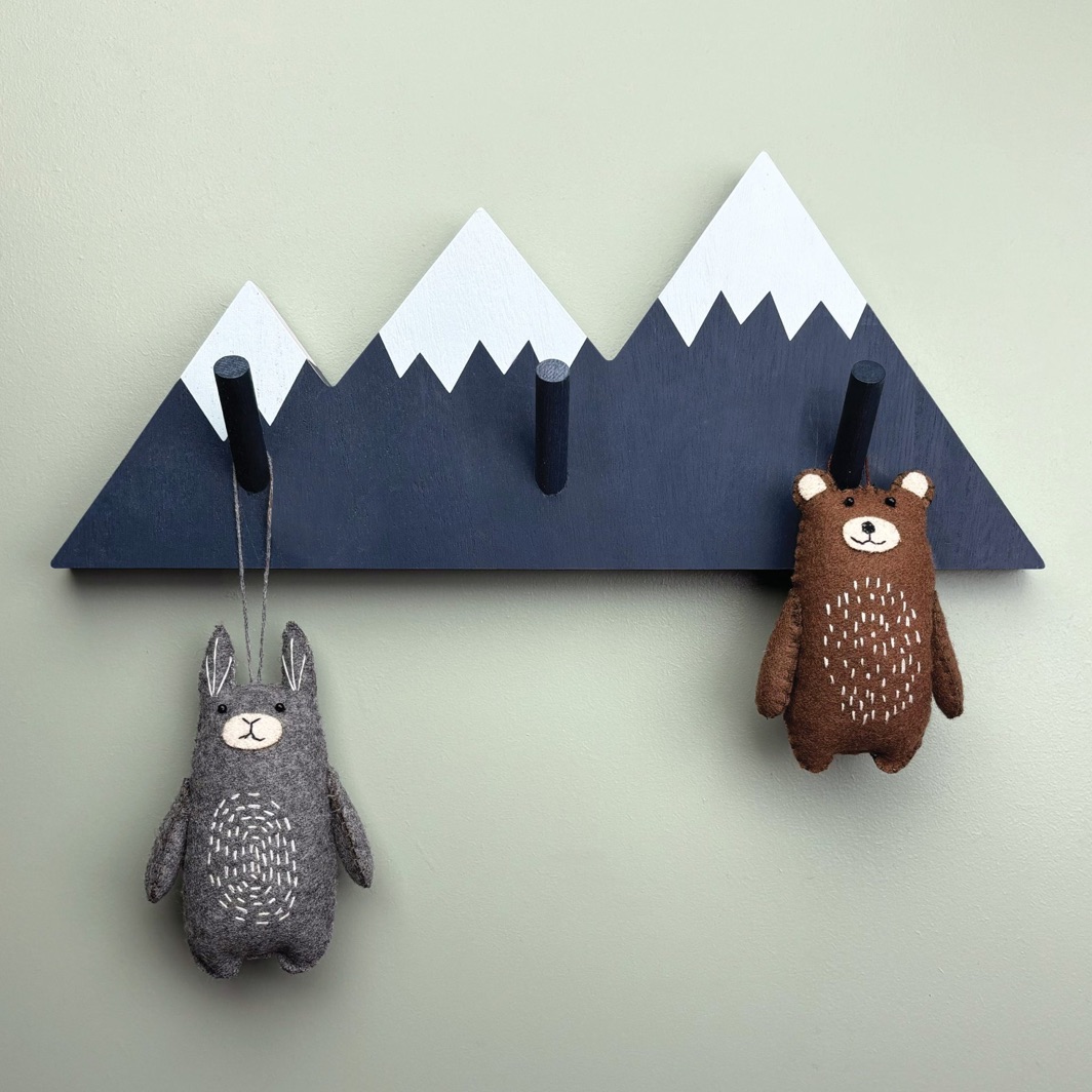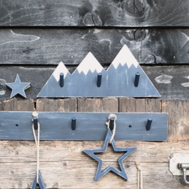 Hook pegboard – Mountains. Made from wood. A great gift for mountain lovers and walkers. Metal wall fixings to rear. Size 33 x 14 x 4cm