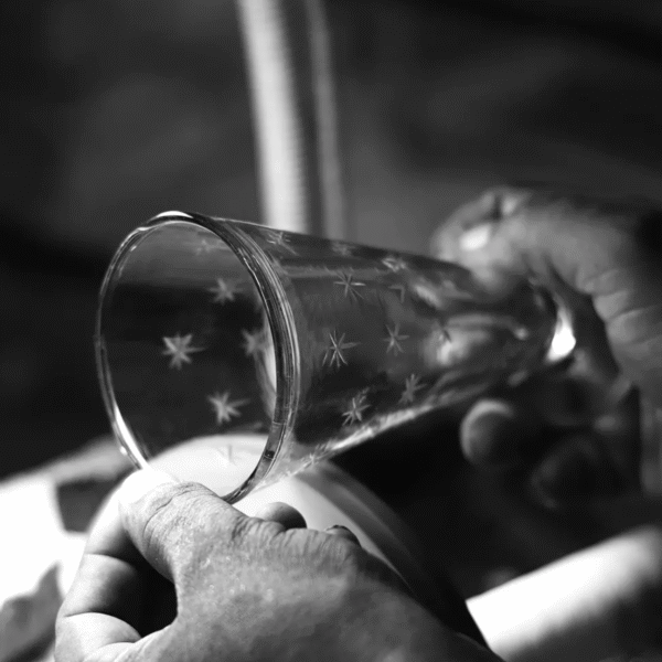 Each piece is handmade from recycled glass, combining beauty with sustainability. The artisanal craftsmanship ensures that every glass has its own unique character, making them both a thoughtful and eco-friendly addition to your collection.