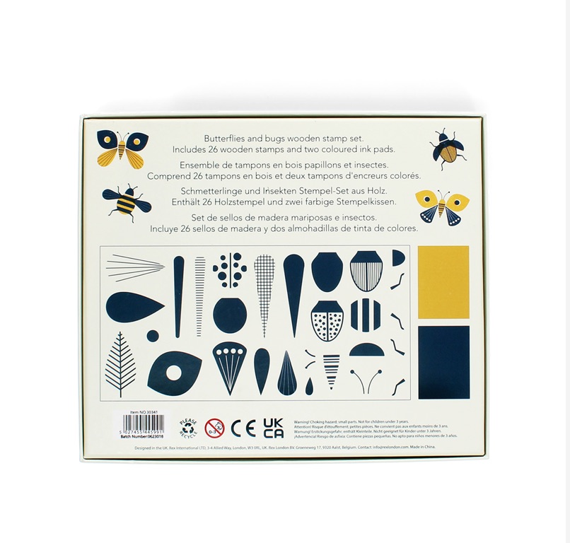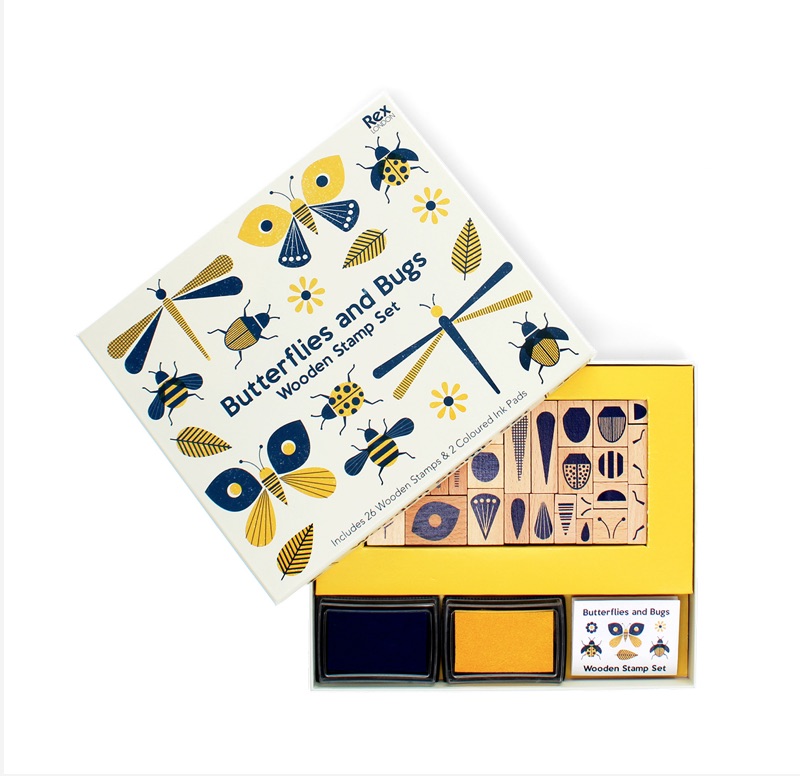 A fun activity set for children featuring a selection of shape stamps and ink pads that can be used to create amazing bug-themed pictures – including bugs such as butterflies, bees, dragonflies, ladybirds, etc.