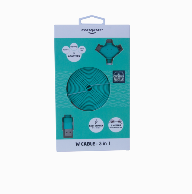 2-meter multi-USB cable 3 in 1: USB-C, Micro USB, and Lightning A universal USB cable: The Xoopar W Long 3 in 1 multi USB cable is the all-in-one charging cable for those who need mobility or convenience. With a trio of next-generation connectors suitable for all USB devices, whether you’re in the car, at the office, or at home.